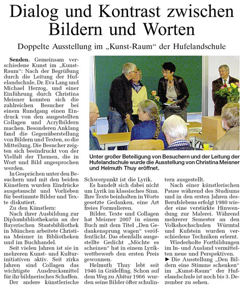 "...den Bildern eine Stimme schenken." KunstRaum im Naturheilzentrum Senden, 17.09. bis 03.12.2010